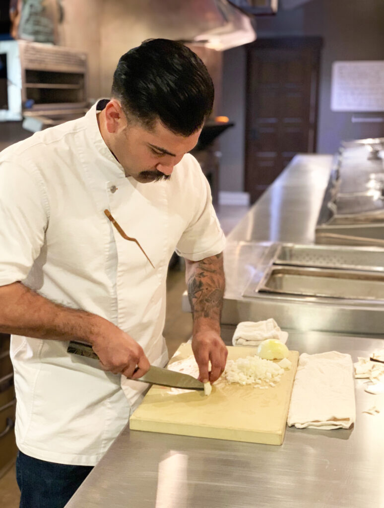 “I was trained that you always have a clean apron, you have a separate towel for your knife and another for the cutting board or counter, and your kitchen is always clean and organized,” he said. “Storage is important too. Everything’s all labeled and organized in the right containers. We pay attention to the details and clean all the time and stuff like that. There were a lot of restaurants that I worked in before I went to school where everyone wiped their hands on their apron. Or no one cared about how to store things properly or how long things last, and that led to a lot of spoilage and waste.”