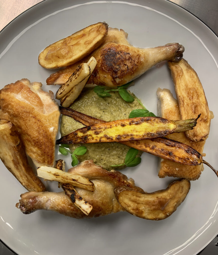 “It’s about knowing the proper way to break things down, to cook them, and store them,” he said. “For example, when we process a protein, like a whole duck, we utilize every part of it so that there is very little waste, or no waste at all. So we’ll take the bones and make stock, or we’ll make a sauce from the stock and use the fat for cooking confit, or put unused parts in new dishes.”