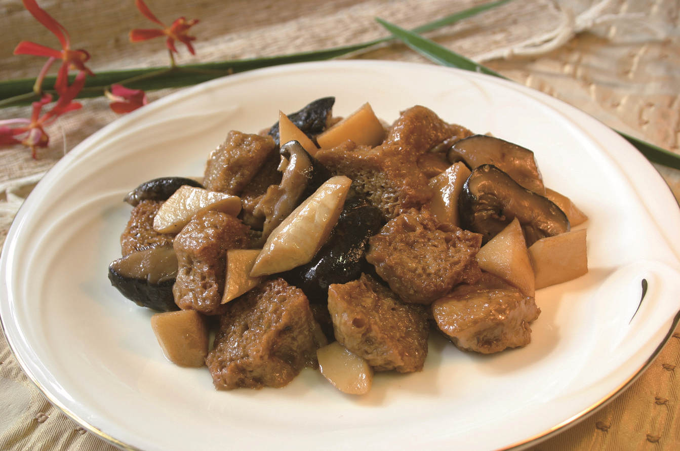 - Add the fried gluten roll cubes to the pot and simmer the mixture for about eight minutes. Sprinkle with sesame oil at the end of cooking.