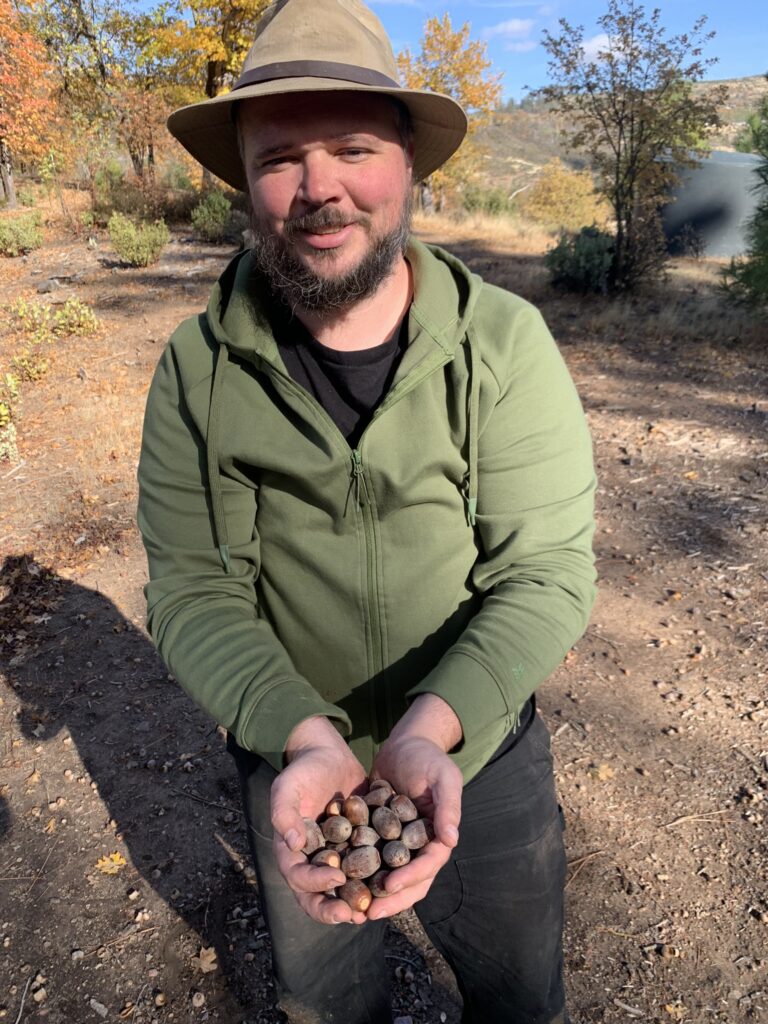 “We take 25% or fewer of the nuts from any given site, to ensure that there are enough left behind for replanting, and for the animals that rely on them,” Wheeler said. “We are also harvesting only on privately owned lands where Native harvesting has not been historically permitted—not on public or tribal lands. We’re working really hard to make sure we’re good neighbors.”